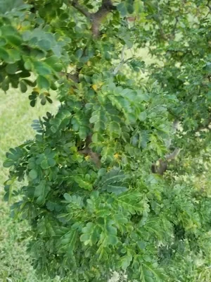 Árbol rústico que soporta condiciones extremas y a la vez contribuye al equilibrio ecológico del matorral. Tiene un follaje fino y elegante con racimos de flores blancas o amarillentas.